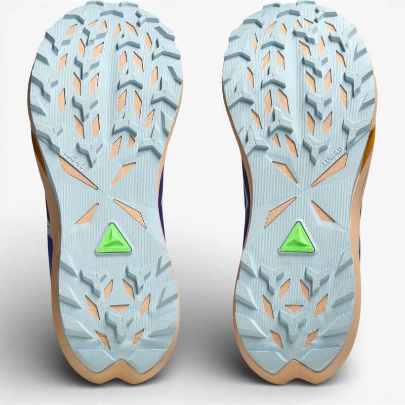 Die Zwischensohle ist im seitlichen Bereich des Vorfußes mit einer Mittelfußumschlingung ausgestattet. Für einen sichereren Sitz auf den Trails wurden die Augenstreben modifiziert, um den Halt zu verbessern. Dieses Update sorgt für eine bessere Kontrolle auf anspruchsvollen Trails und gibt dir das nötige Selbstvertrauen, um schnell zu laufen.